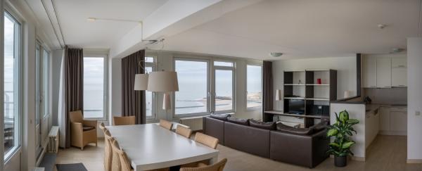 Dit schitterende zespersoons Penthouse ligt direct aan de Boulevard op 100 meter van het strand van Vlissingen. Het Penthouse bevindt zich op de bovenste etage van het mooie vijfsterren Strandappartementen-complex "De Gulden Stroom". Vanuit het Penthouse heb je een fantastisch uitzicht over Vlissingen en de Westerschelde. Terrasjes, een grote diversiteit aan restaurantjes en winkeltjes, het schone zandstrand...alles binnen handbereik. Of nu de zon schijnt of het stormt en regent, hier is het altijd heerlijk om te zijn. De vaargeul van en naar de haven loopt parallel langs de boulevard, waardoor je allerlei schepen langs kunt zien varen op redelijk korte afstand. Prachtige locatie!