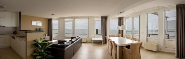 Dit schitterende zespersoons Penthouse ligt direct aan de Boulevard op 100 meter van het strand van Vlissingen. Het Penthouse bevindt zich op de bovenste etage van het mooie vijfsterren Strandappartementen-complex "De Gulden Stroom". Vanuit het Penthouse heb je een fantastisch uitzicht over Vlissingen en de Westerschelde. Terrasjes, een grote diversiteit aan restaurantjes en winkeltjes, het schone zandstrand...alles binnen handbereik. Of nu de zon schijnt of het stormt en regent, hier is het altijd heerlijk om te zijn. De vaargeul van en naar de haven loopt parallel langs de boulevard, waardoor je allerlei schepen langs kunt zien varen op redelijk korte afstand. Prachtige locatie!
