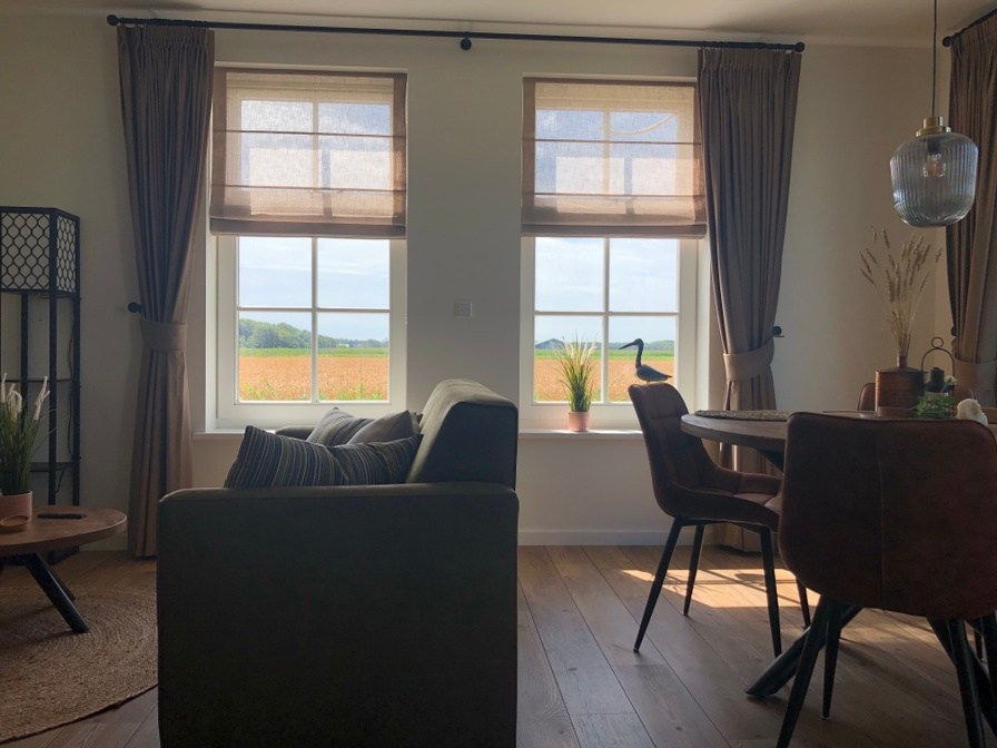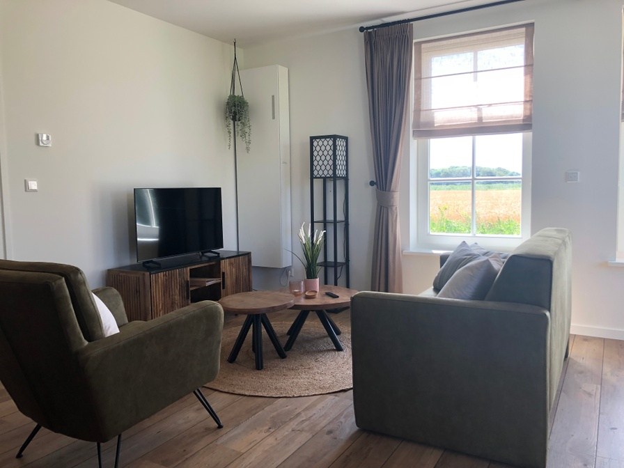 Dit ruime appartement met eigen ingang en terras op het westen ligt op de begane grond. Entree via hal met kapstok en spiegel. Woonkamer met ruime eettafel en fijne zithoek bij de smart-tv. Open keuken in landelijke stijl met vaatwasser, kookplaat, combimagnetron, ruime koelkast met vriesvak, waterkoker, zowel filterkoffiezet apparaat als een Nespresso-apparaat en een prachtig Bunzlau Castle servies. Slaapkamer met luxe bed (180 x 200 cm), kledingkast, nachtkastjes en tweede smart-tv. Zeer ruime badkamer met regendouche en normale douche, toilet en wastafel met twee ruime lades voor je toiletspullen. Badlinnen en keukenlinnen inbegrepen! Je kunt ook gebruik maken van de tuin op het zuiden. Op je terras staan twee relaxstoelen met dikke kussens en een tafeltje tot je beschikking. Het terras is vanuit de woonkamer toegankelijk via de openslaande tuindeuren (met hor).